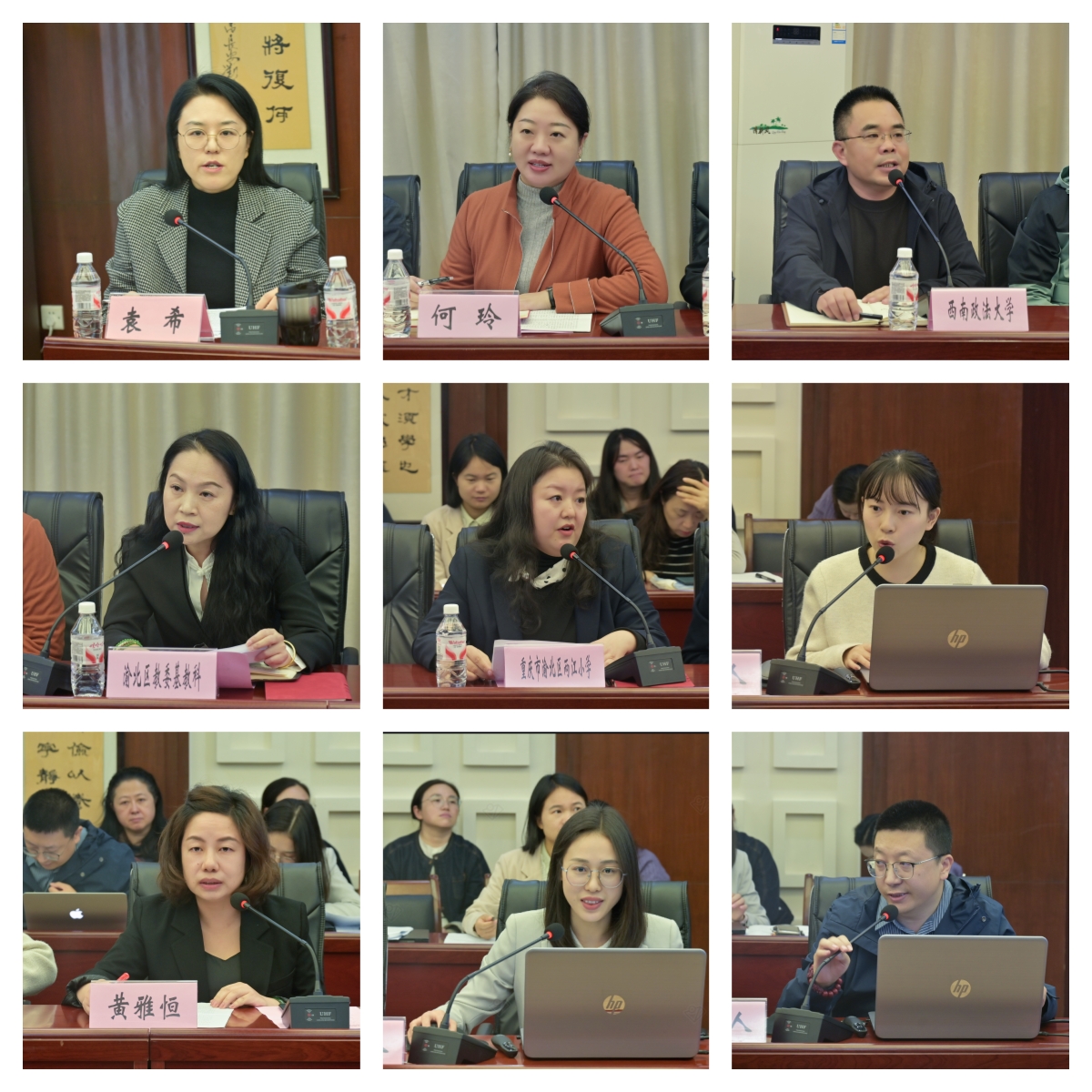 集体研讨过程中,重庆红岩革命历史博物馆何玲部长首先介绍了红岩场馆中针对小学、中学、大学不同学习阶段的学生设计不同的主题讲解和参观模式,这种“同主题、差异化”的展览设计,生动展现了思政教育从情感启蒙到理论认同的进阶路径。渝北区教委基教科副科长江娅建议,共享思政实践基地资源,进一步推动大中小学思政课一体化建设。西南政法大学马克思主义学院副院长程文标提出,要从“讲深”“讲透”“讲活”三个方面从理论高度阐释习近平新时代中国特色社会主义思想的世界观和方法论,深化学生的理想信念,深刻意识到自己的使命担当。渝北两江中学高中政治教师钟美琪通过针对高中段中学习的重难点解析,引导学生将个人理想与民族复兴相结合,明确责任担当。渝北两江小学渝北区“炫彩”班主任工作室团队涂建嫔、曾文兰老师对小学阶段思政课的教学设计是通过让低年级与高年级同学共同完成情景表演等具象化方式,启蒙学生的家国情怀。