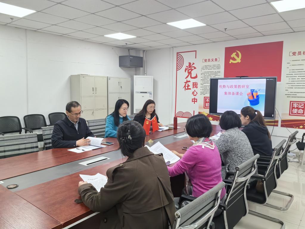 李慧萍书记谈到形势与政策课及时、准确、深入地向学生解读党中央的最新决策部署、国内外重大事件的内在逻辑,引导学生正确认识世界和中国发展大势,深刻理解“两个确立”的决定性意义,要力求做到立足专业特色,创新教学方法。